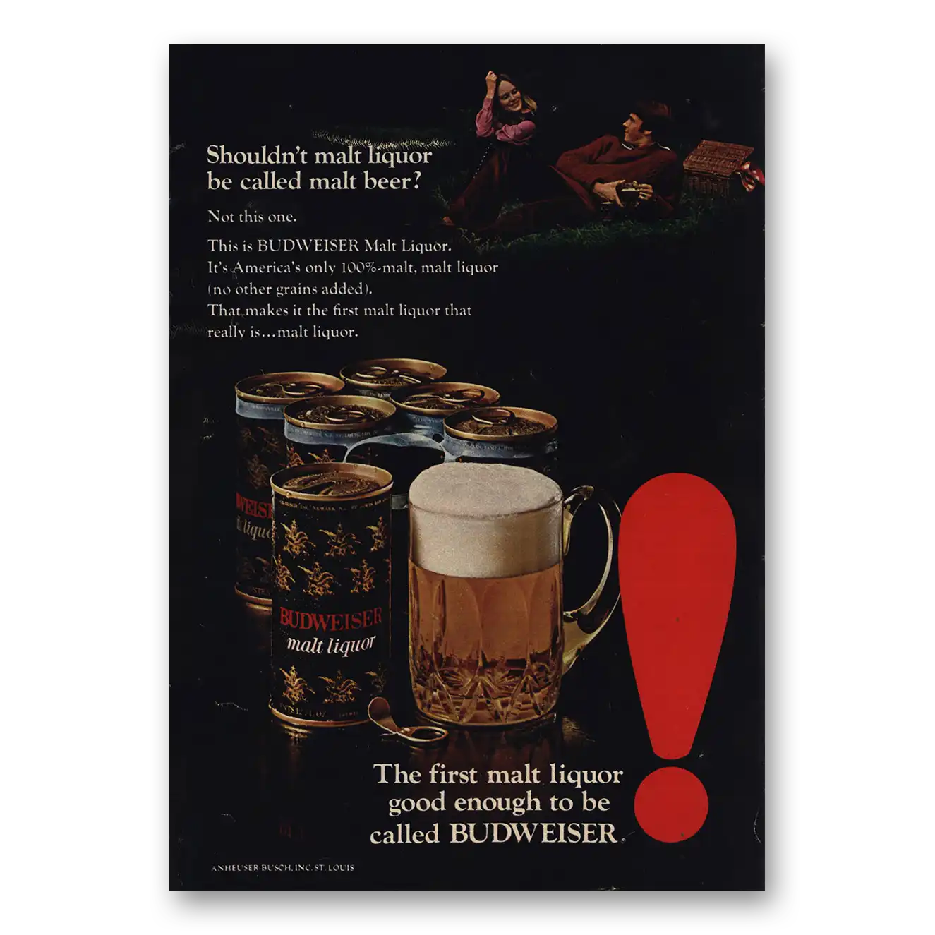 This is an original 1972 Budweiser Beer print ad published by Anheuser Busch.