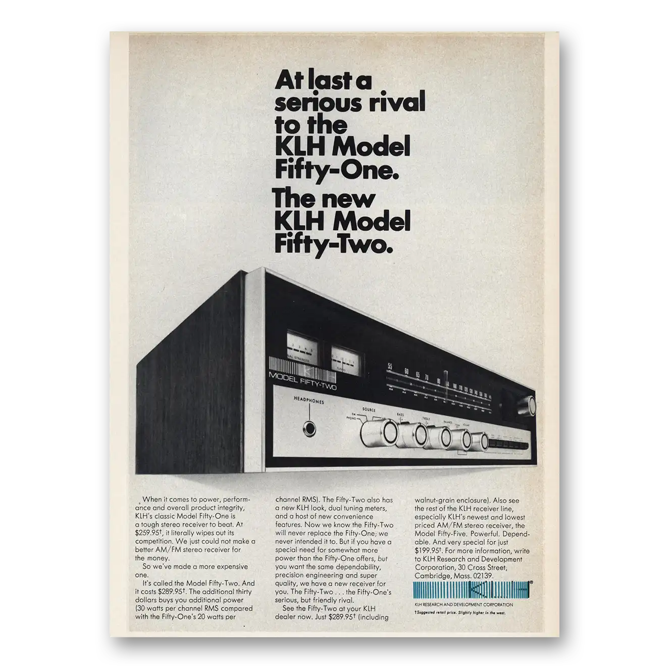 1972 KLH Receiver Print Ad | Serious Rival