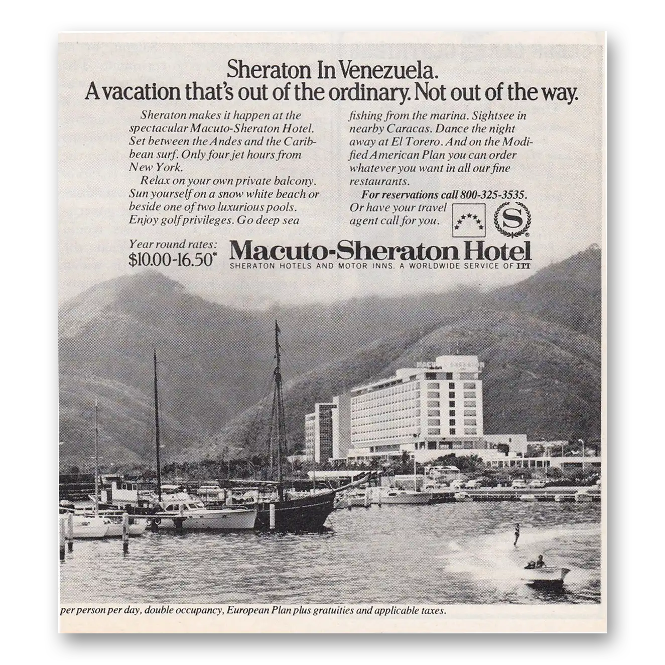 This is an original 1972 Macuto Sheraton Hotel print ad published by Sheraton Hotels.