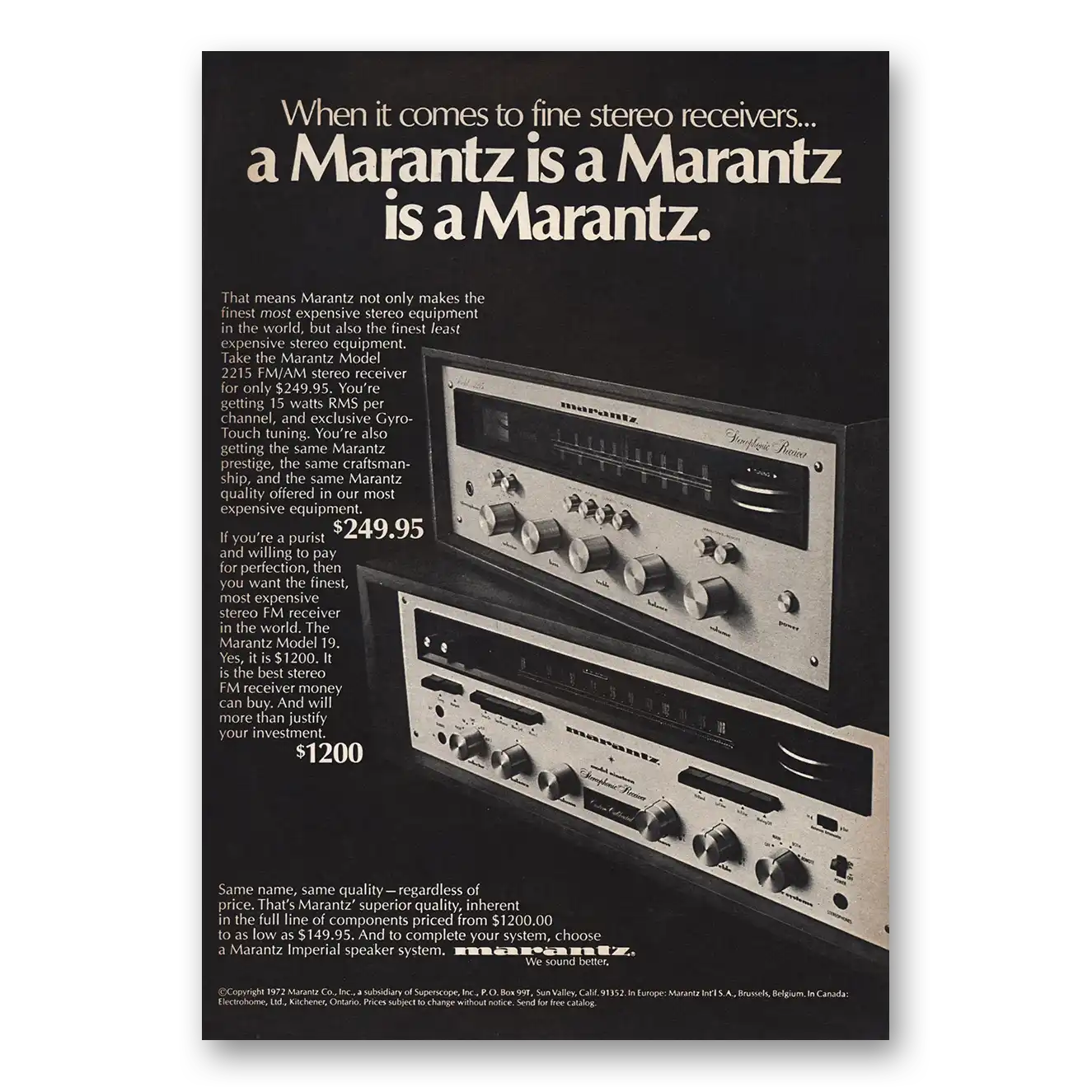 1972 Marantz Stereo Receivers Print Ad | Marantz Ismarantz Is Marantz