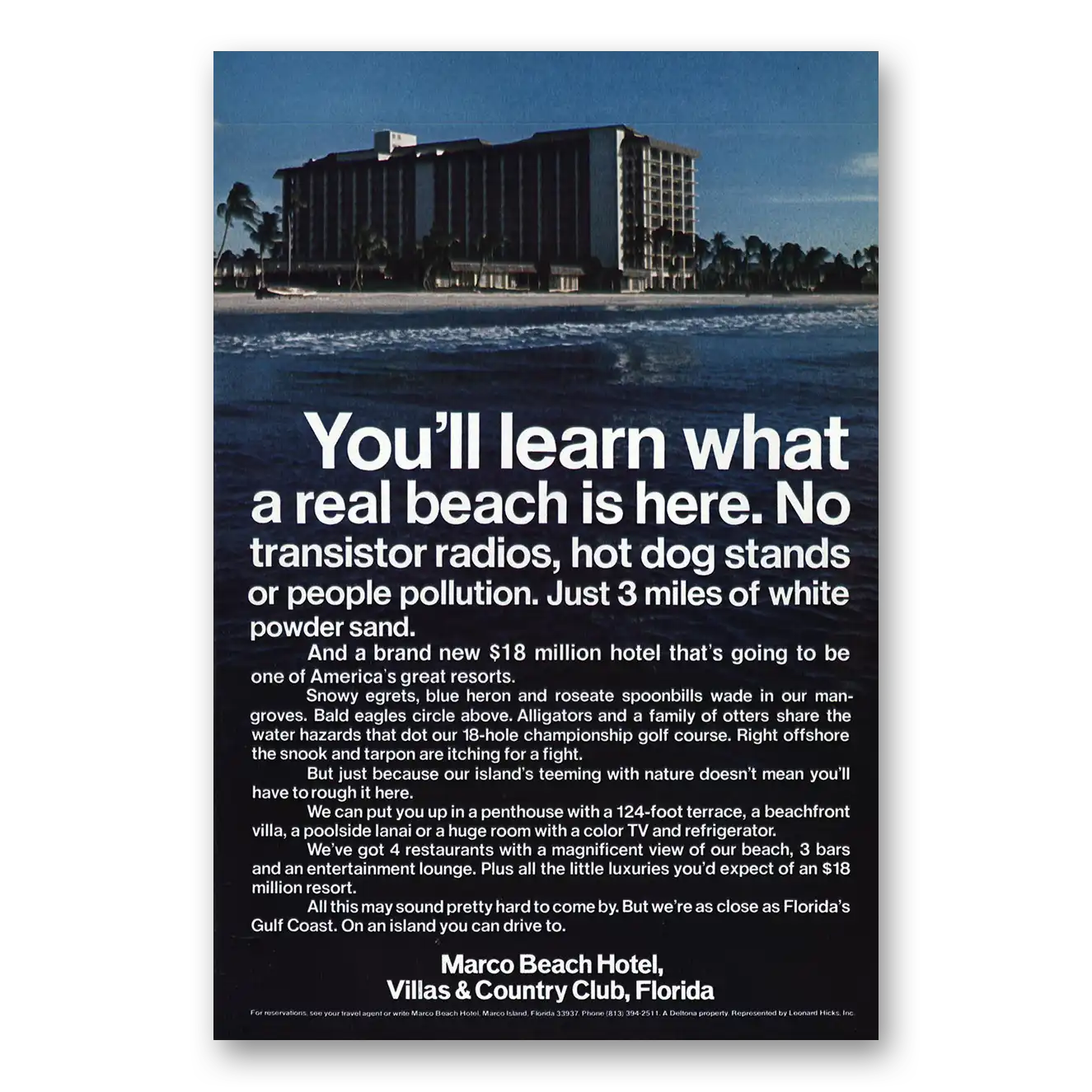 This is an original 1972 Marco Beach Hotel print ad published by Marco Beach Hotel.