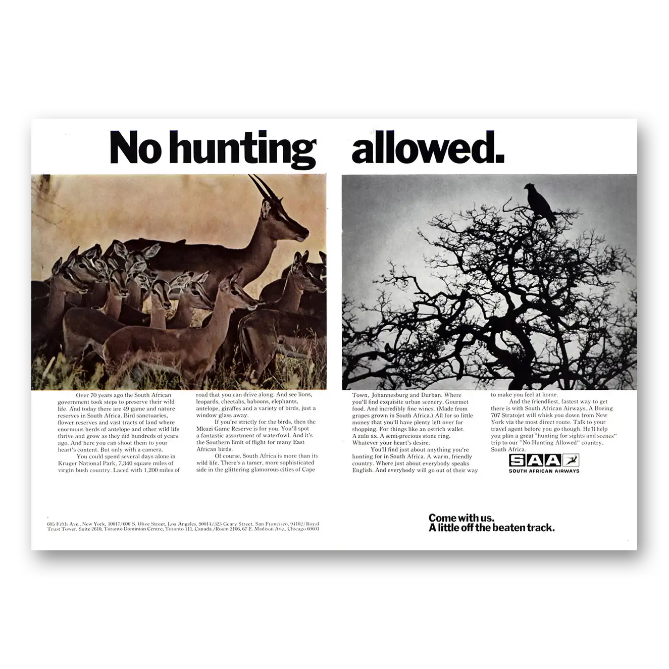 1972 South African Airways Print Ad | No Hunting