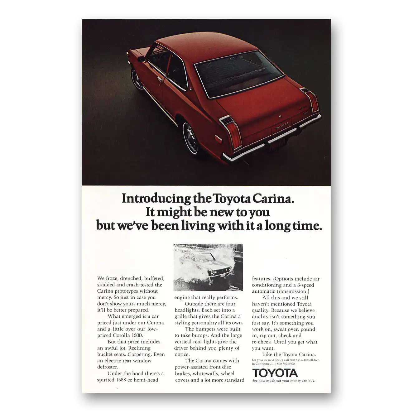 This is an original 1972 Toyota Carina print ad published by Toyota.