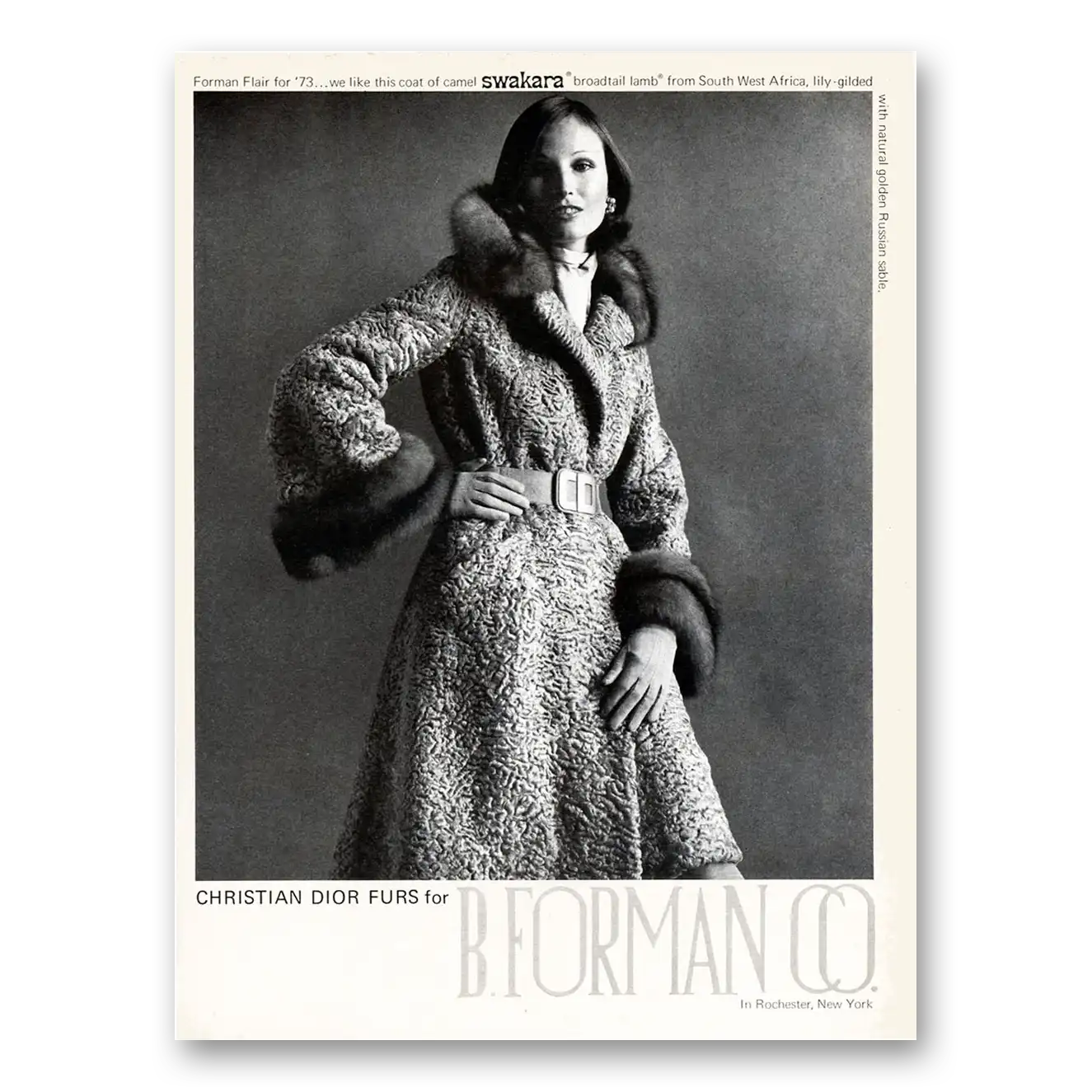 This is an original 1973 B Forman print ad published by B Forman.