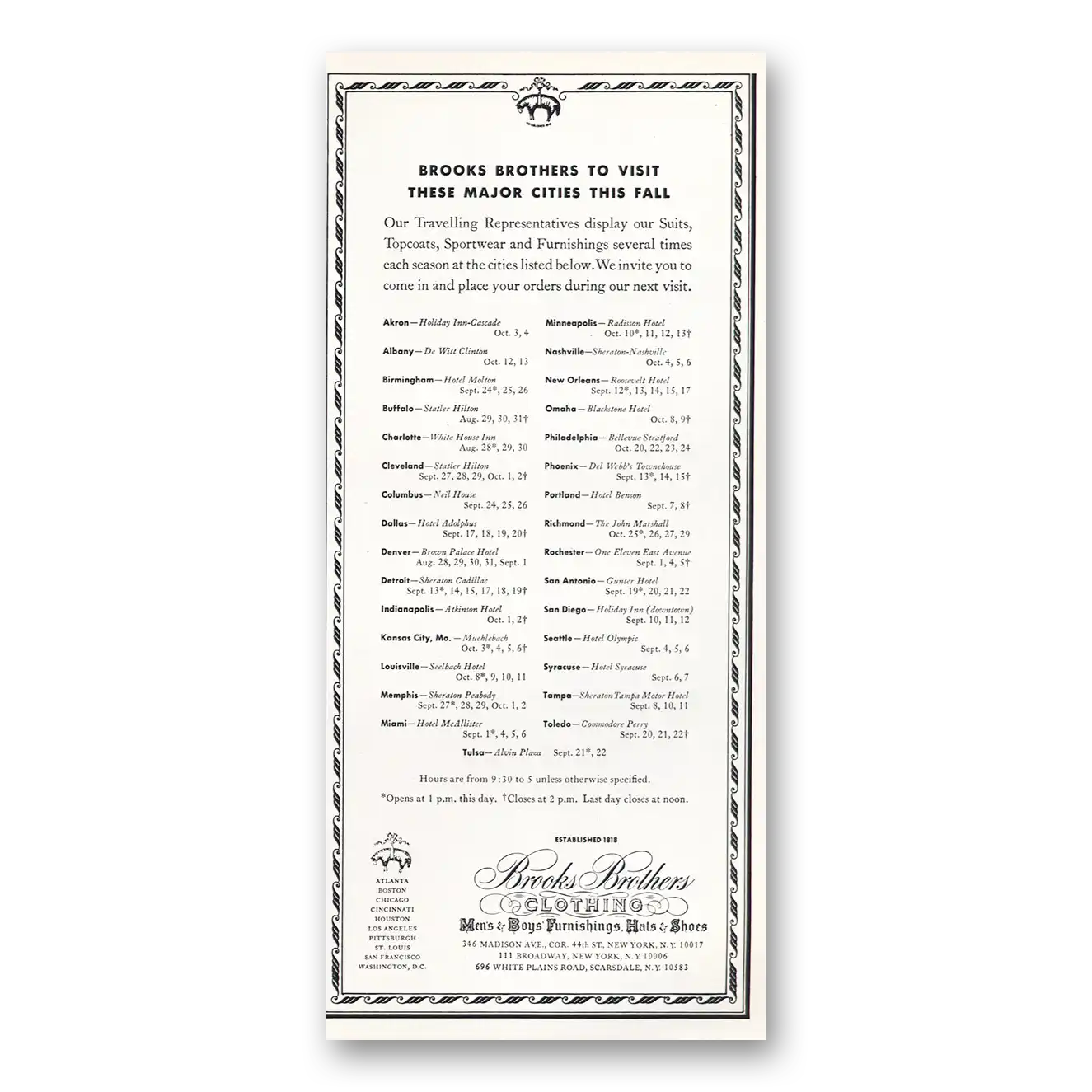 1973 Brooks Brothers Print Ad | Visit These Major Cities