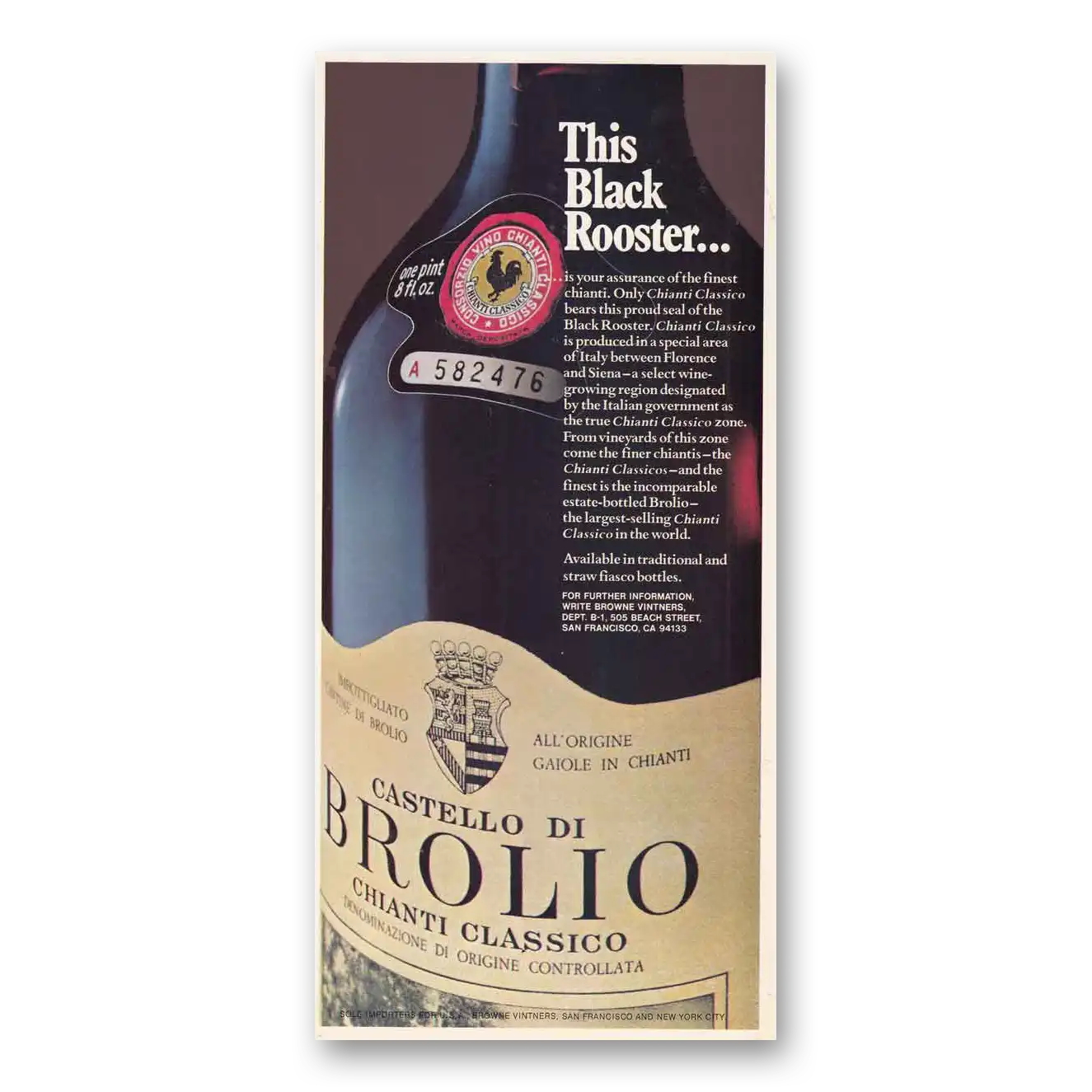 1973 Castello Di Brolio Chianti Print Ad | Black Rooster