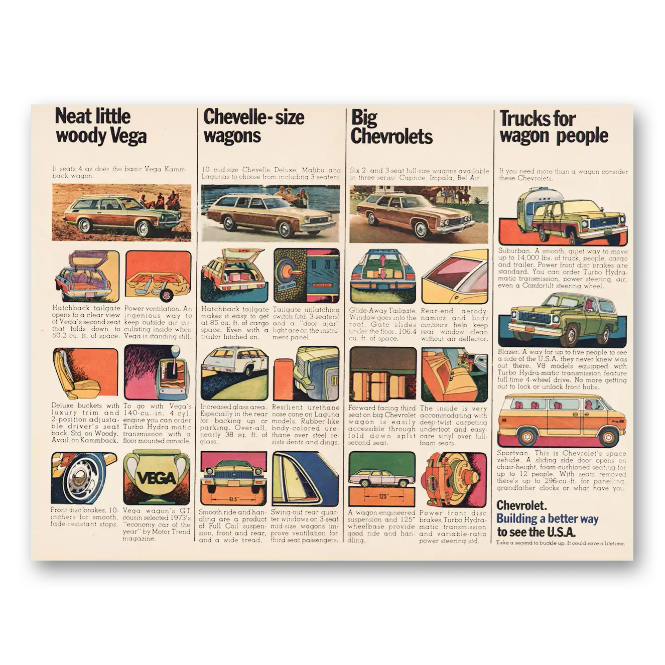 1973 Chevrolet Wagons Print Ad | Little Woody Vega