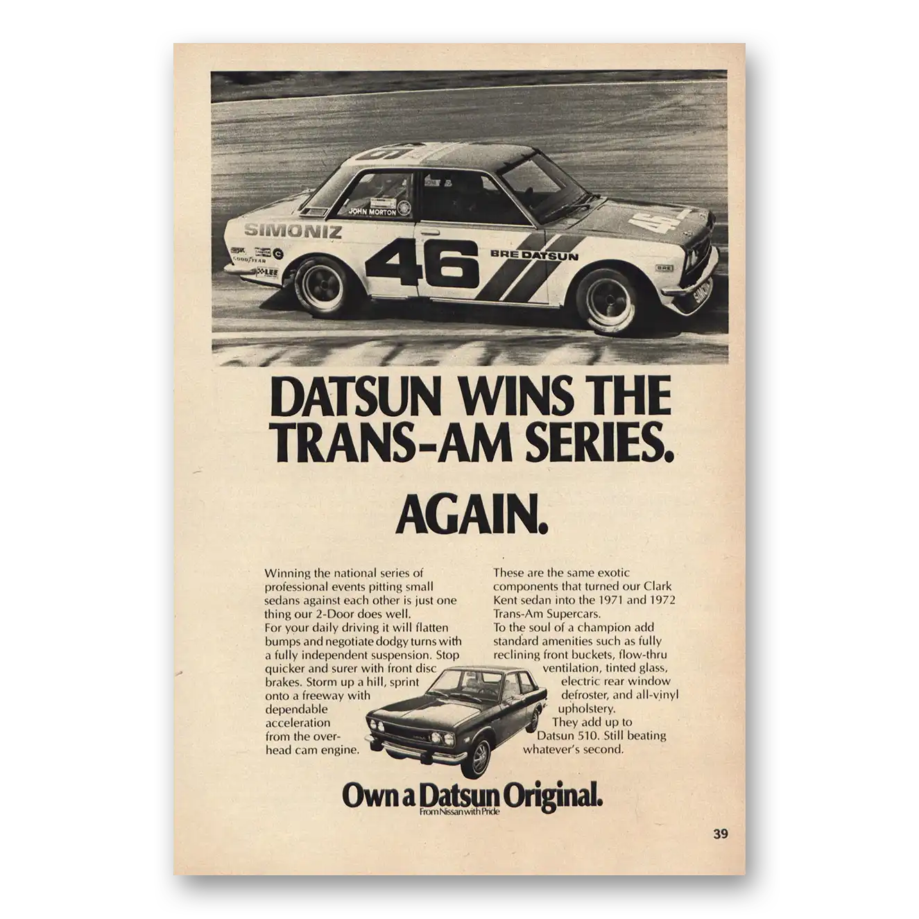 1973 Datsun Print Ad | Wins Trans Am Series Again