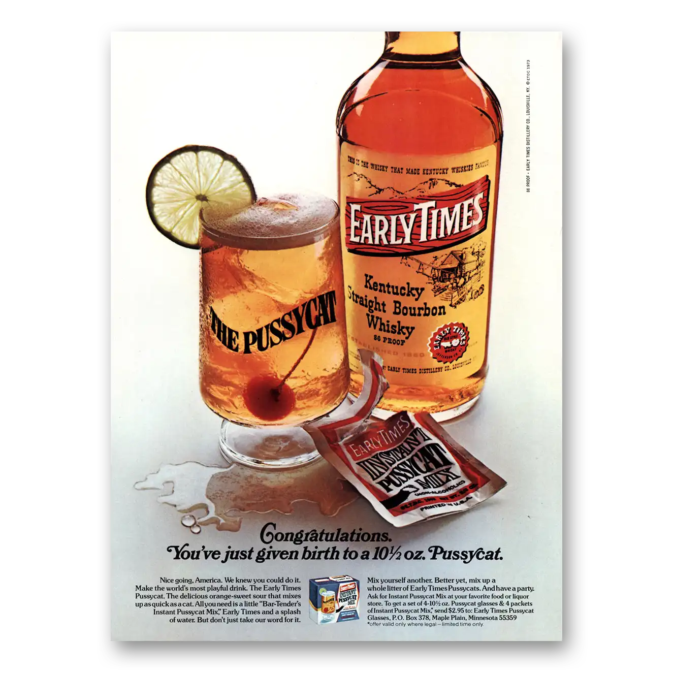 1973 Early Times Whisky Print Ad | Pussycat