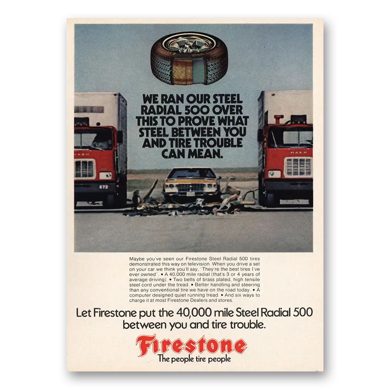 1973 Firestone Tires Print Ad | Radial 500