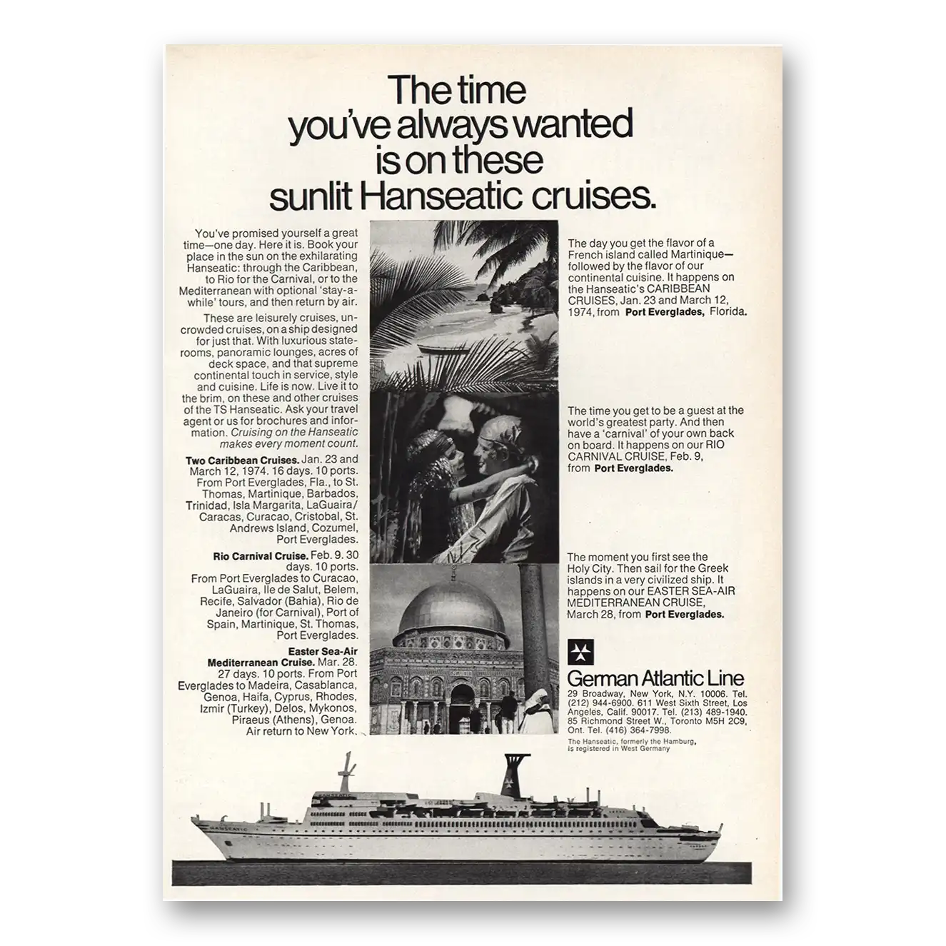 1973 German Atlantic Line Print Ad | Hanseatic Cruises