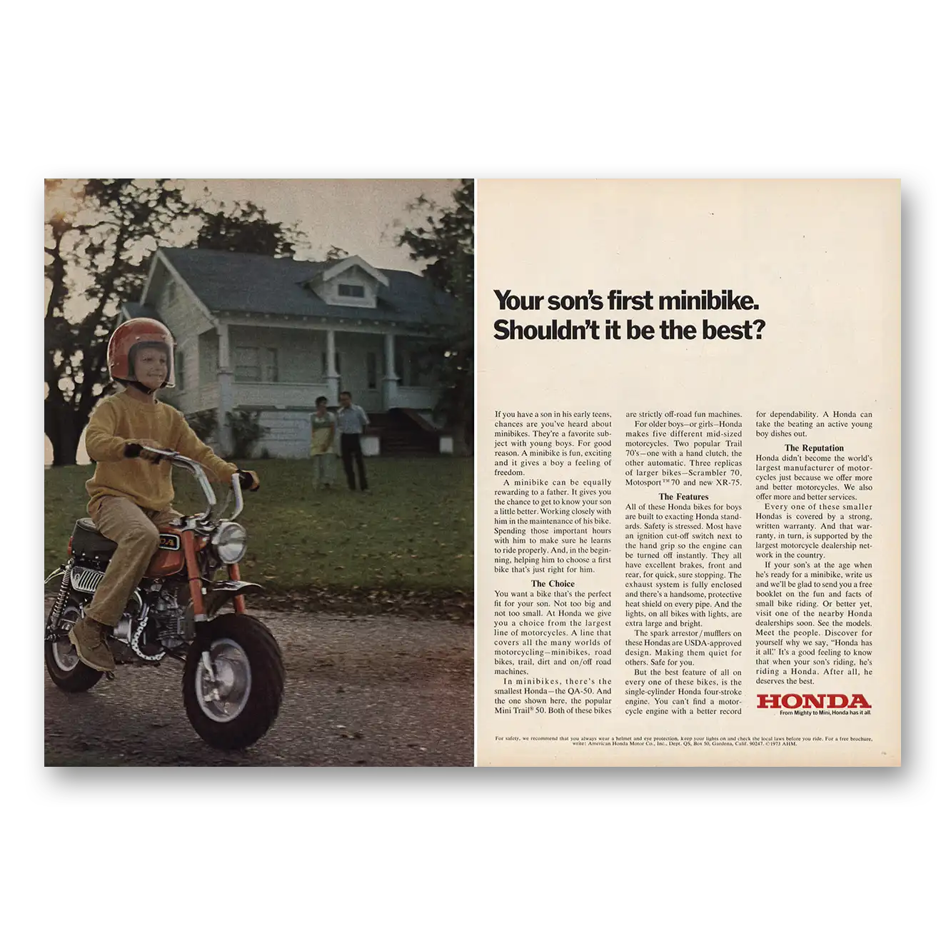 1973 Honda Motorcycle Print Ad | Sons First Minibike1973 Honda Motorcycle Print Ad | Sons First Minibike