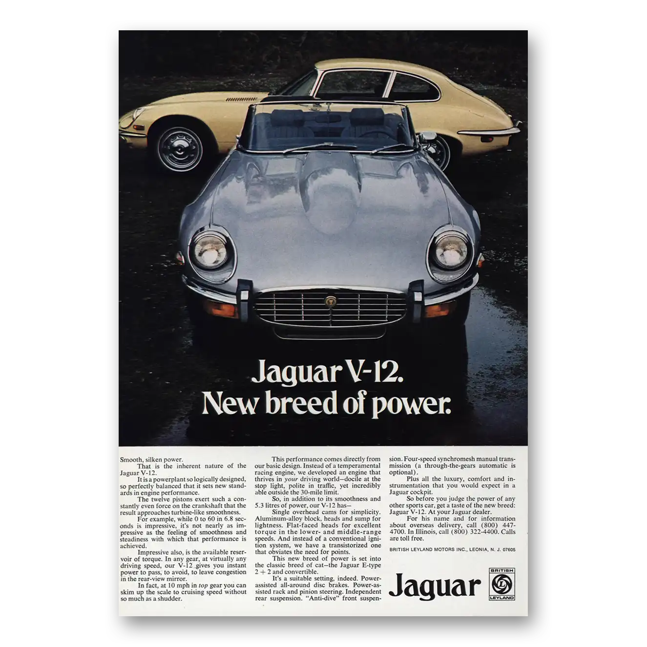 This is an original 1973 Jaguar V12 print ad published by British Leyland.