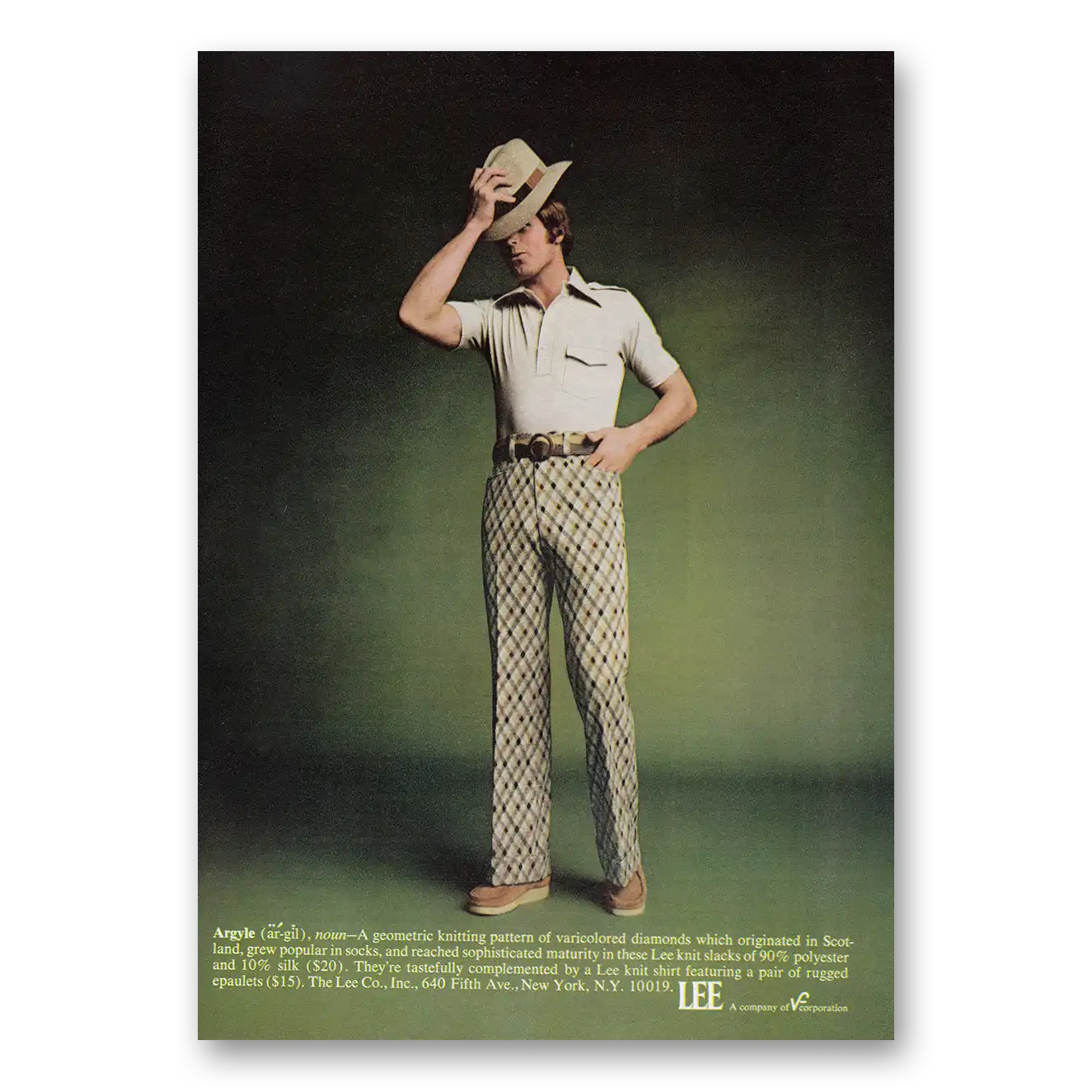 1973 Lee Menswear Print Ad | Argyle Geometric