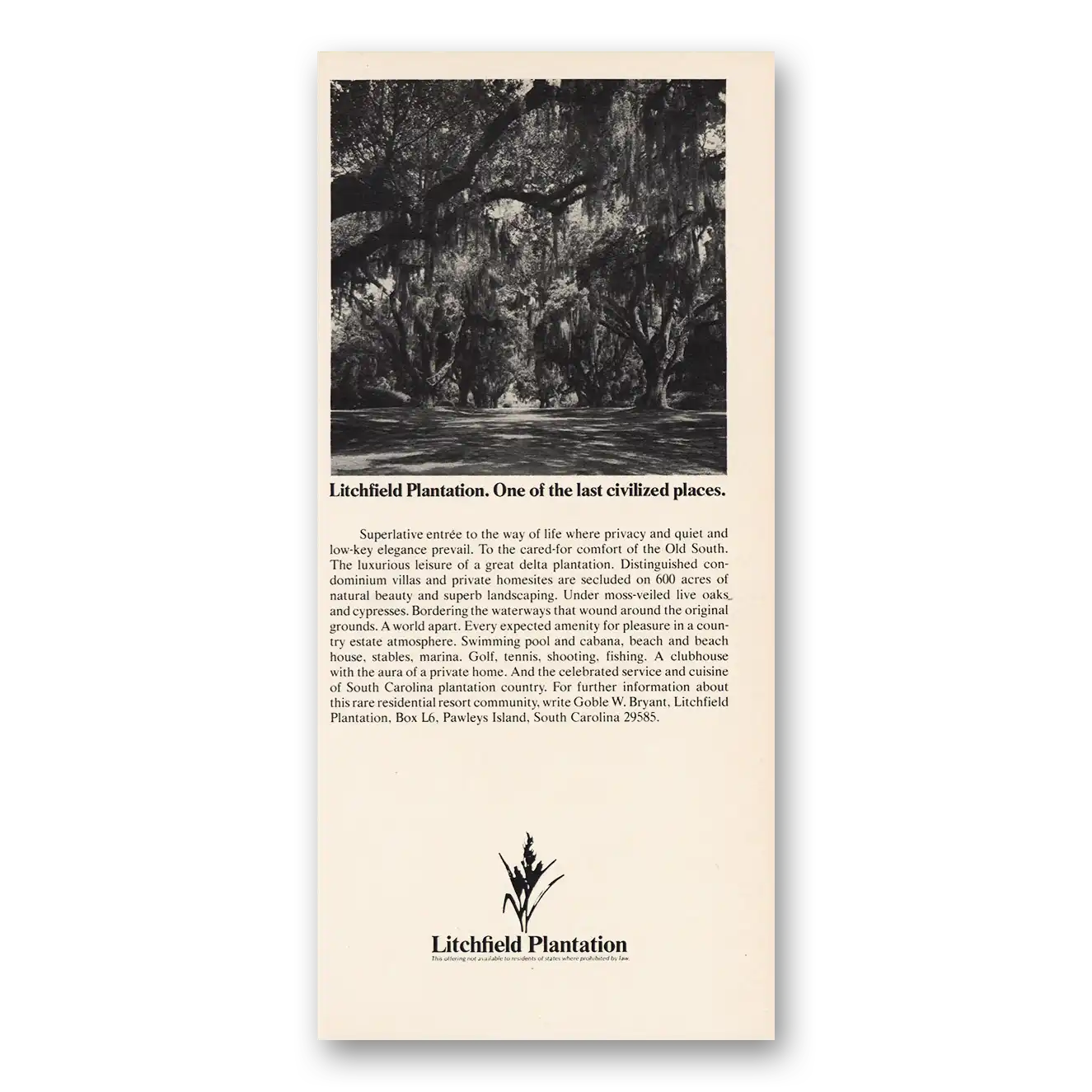 1973 Litchfield Plantation Print Ad | Last Civilized Places