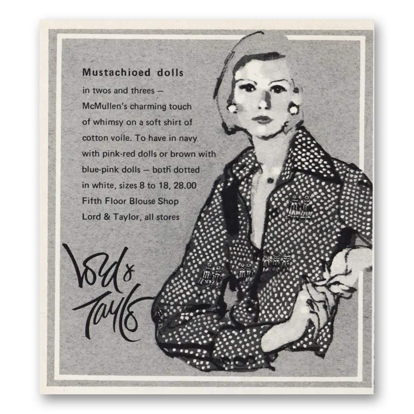 1973 Lord & Taylor Print Ad | Mustachioed Dolls