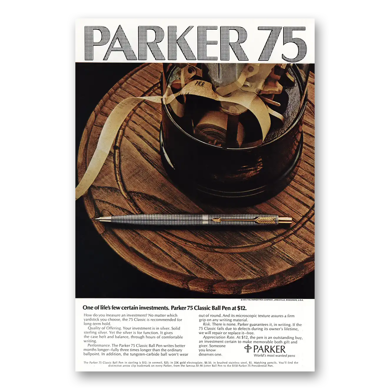 1973 Parker 75 Pen Print Ad | Certain Investments