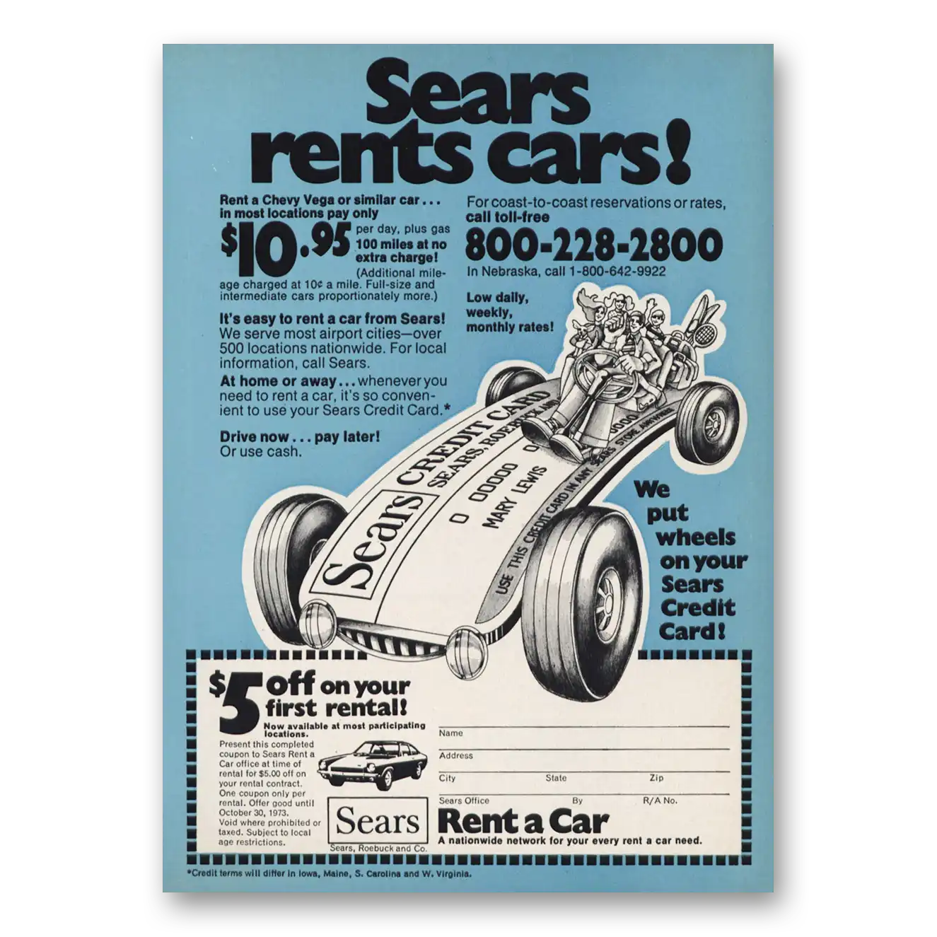1973 Sears Rent a Car Print Ad | Rents Cars