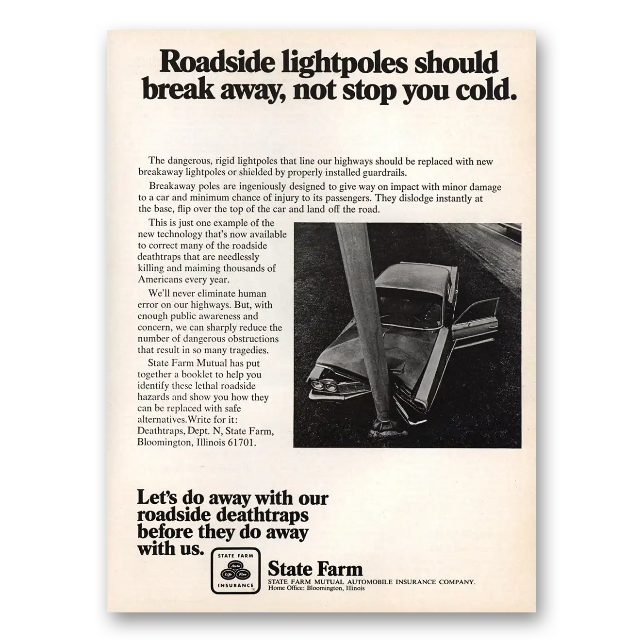 1973 State Farm Insurance Print Ad | Roadside Lightpoles