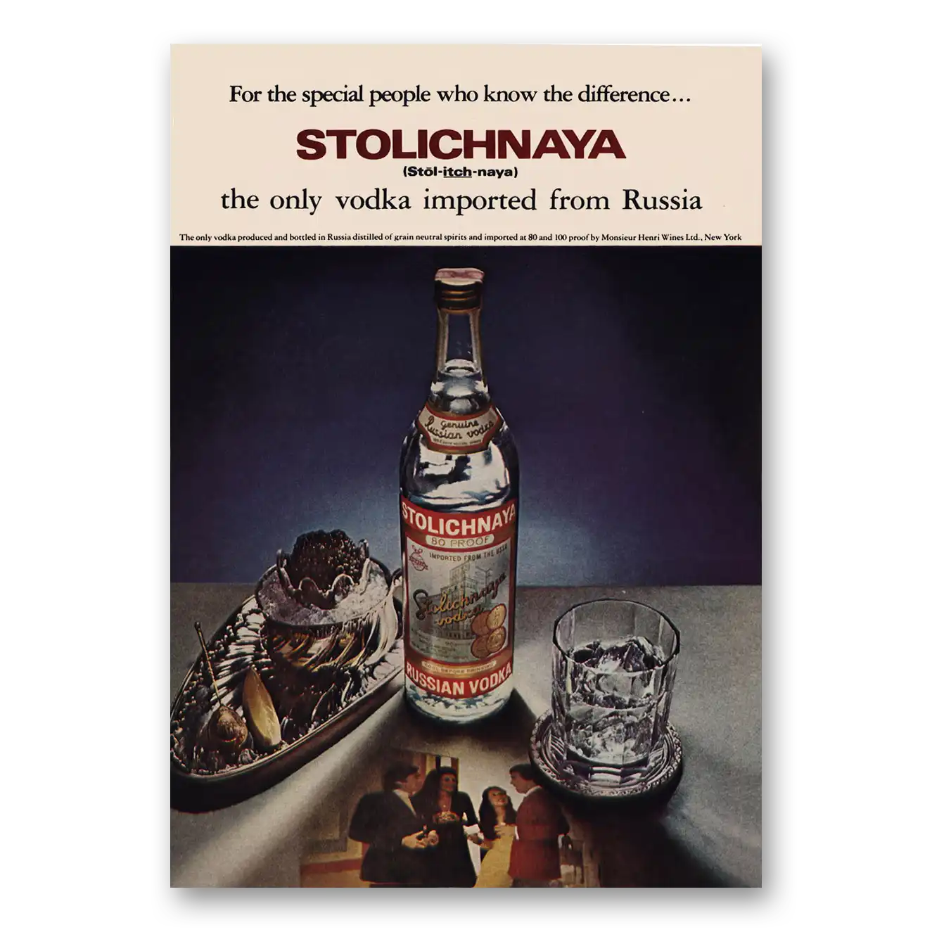 This is an original 1973 Stolichnaya Vodka print ad published by Stolichnaya Vodka.