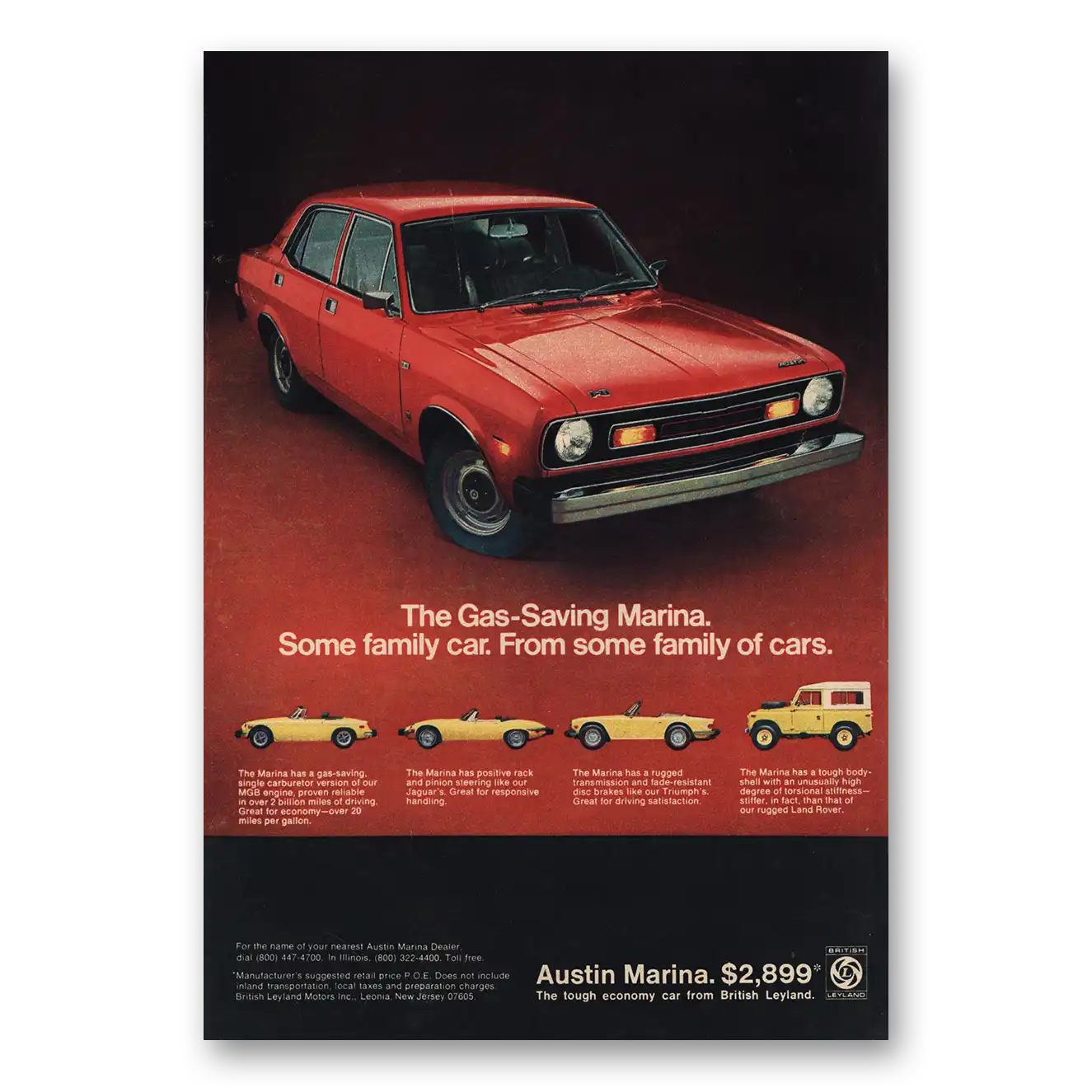 This is an original 1974 Austin Marina print ad published by Austin Motor Company.