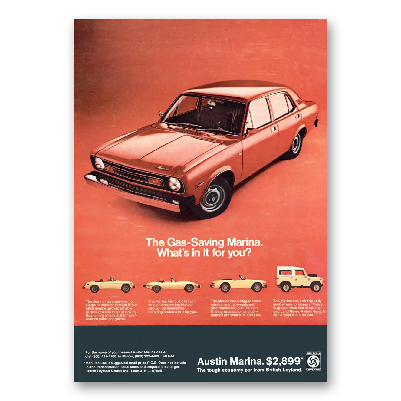 This is an original 1974 Austin Marina print ad published by British Leyland.