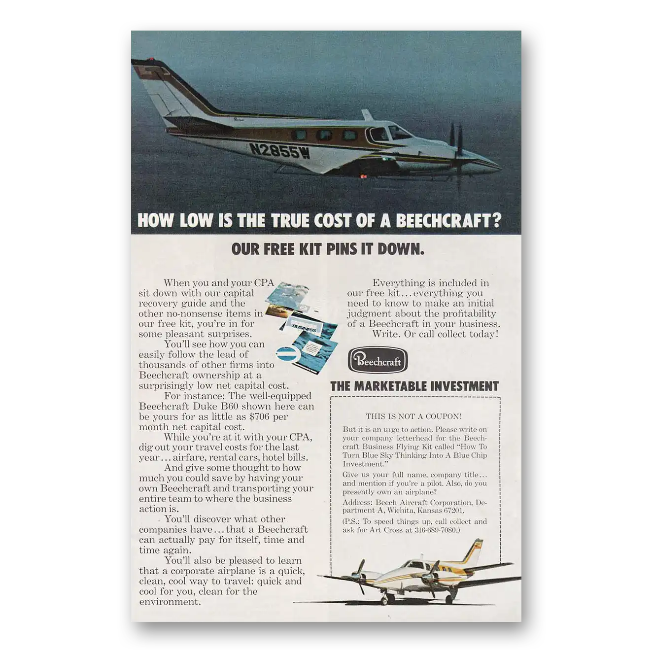1974 Beechcraft Duke Print Ad | B60 True Cost