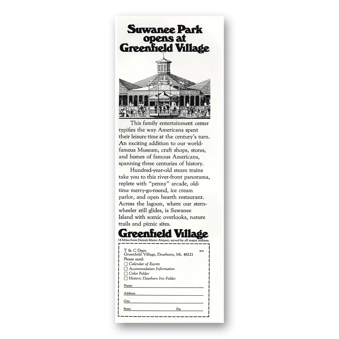 1974 Greenfield Village Print Ad | Suwanee Park