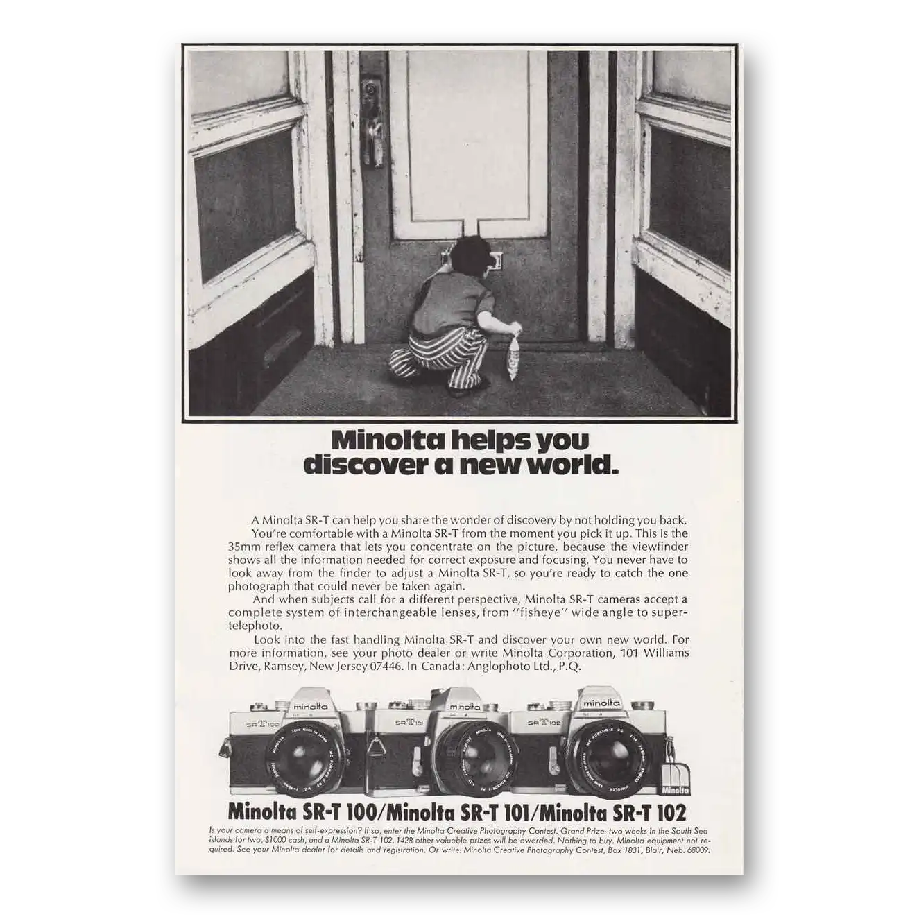1974 Minolta SRT Camera Print Ad | New World