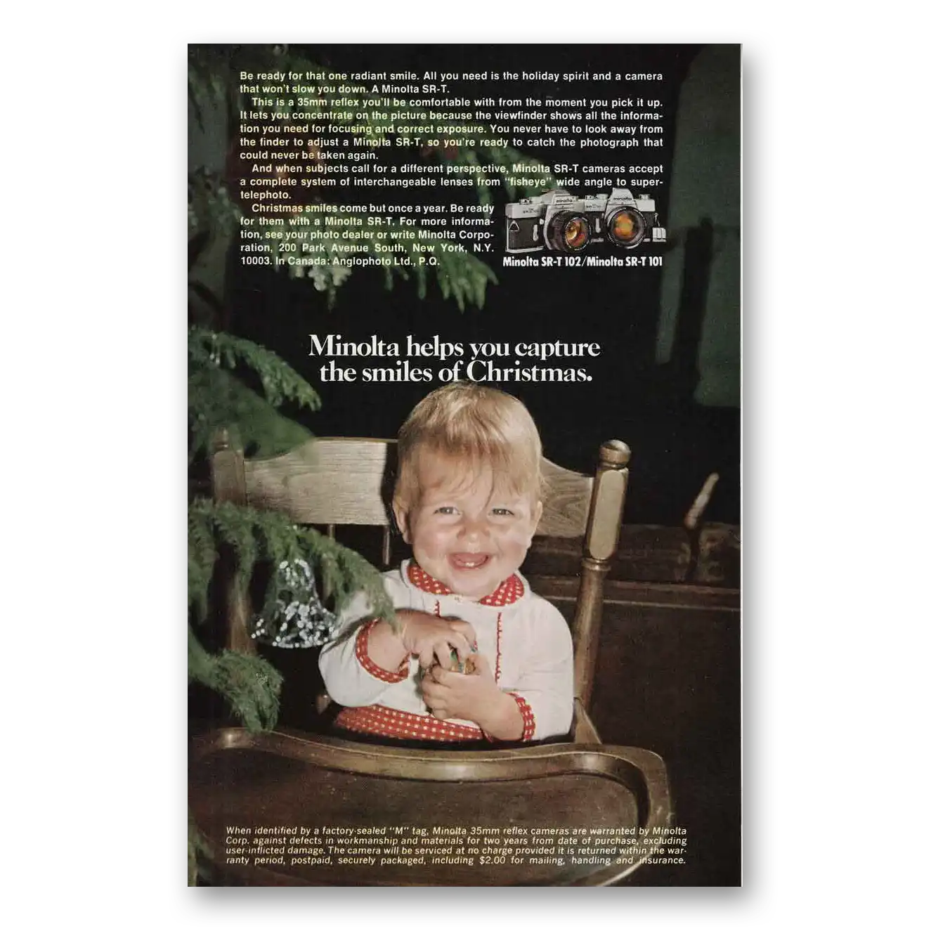 1974 Minolta SRT Camera Print Ad | Smiles Christmas