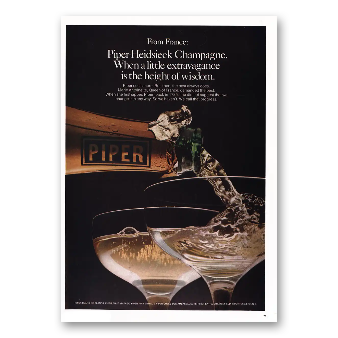 This is an original 1974 Piper Heidsieck Champagne print ad published by Piper Heidsieck.
