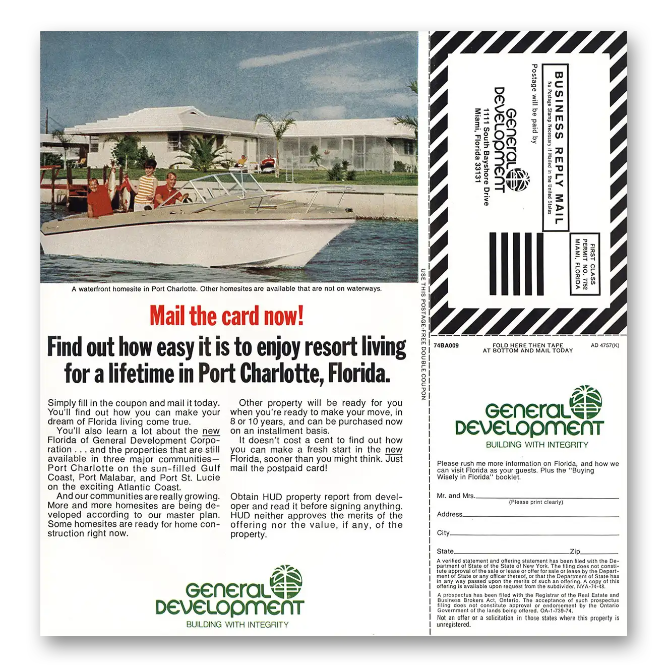 This is an original 1974 Port Charlotte Florida print ad published by General Development.