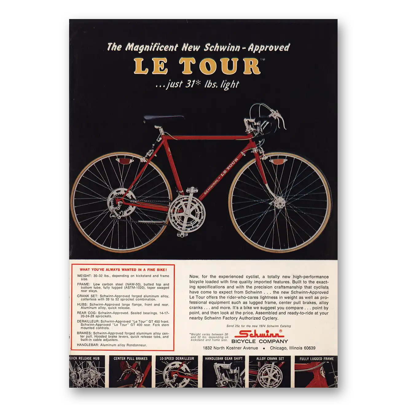 1974 Schwinn Bicycles Print Ad | Le Tour Bicycle