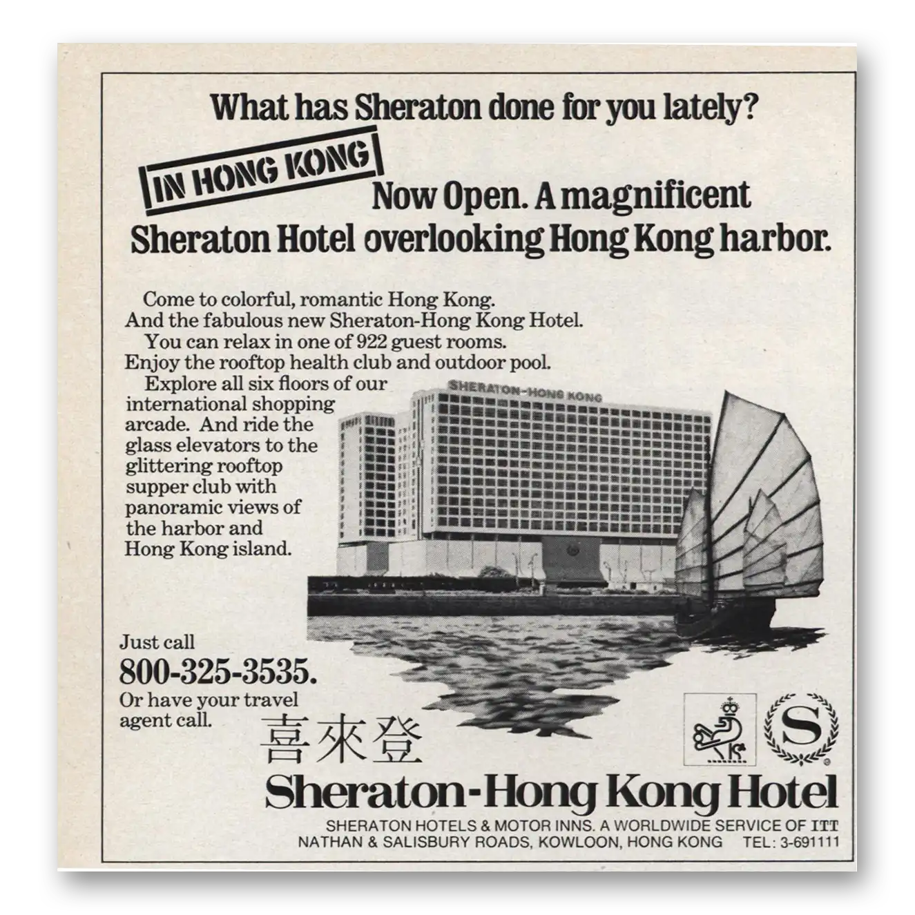 This is an original 1974 Sheraton Hong Kong Hotel print ad published by Sheraton Hotels.
