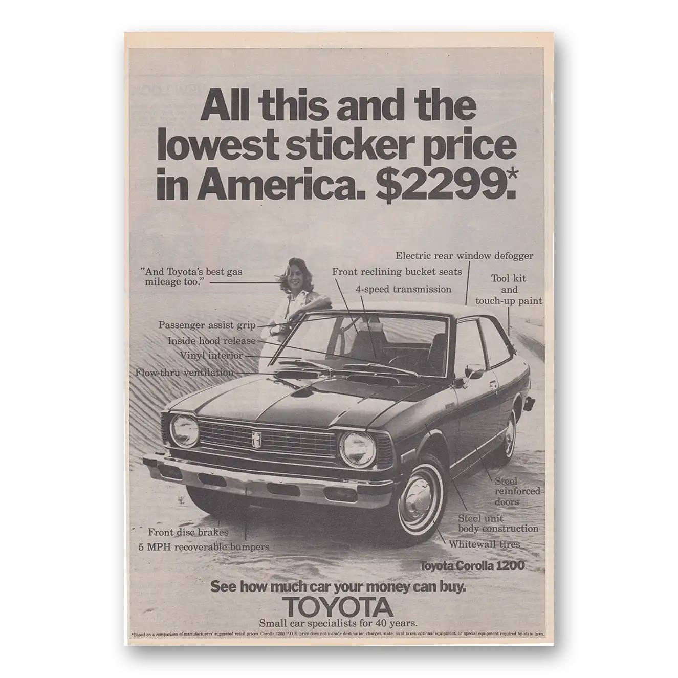 This is an original 1974 Toyota Corolla print ad published by Toyota.