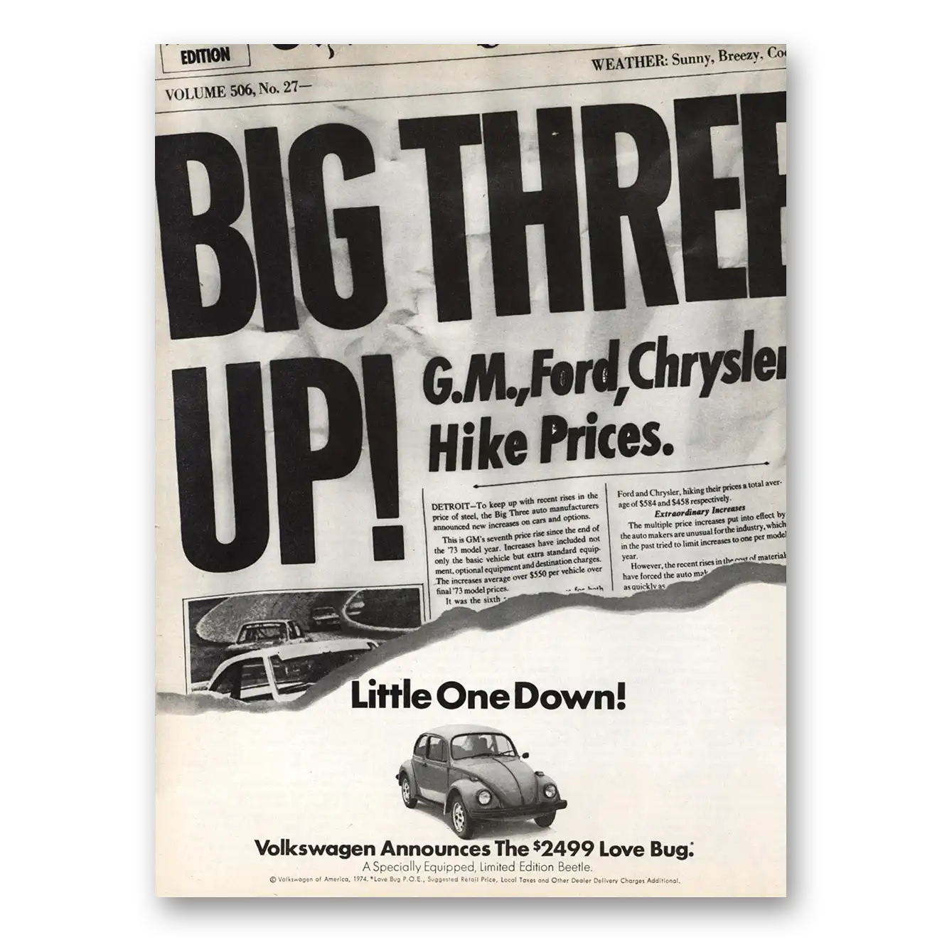 This is an original 1974 Volkswagen Beetle print ad published by Volkswagen.