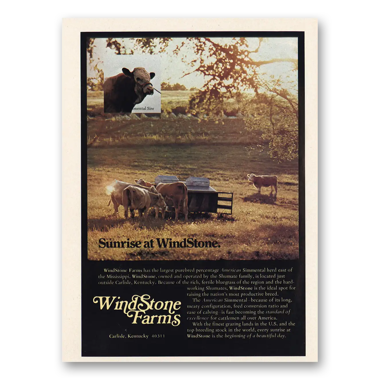 1974 Wind Stone Farms Print Ad | Carlisle Kentucky