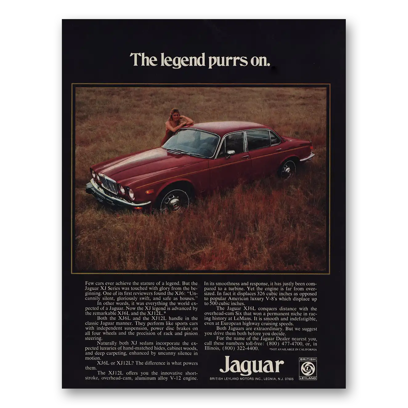 This is an original 1975 Jaguar print ad published by British Leyland.