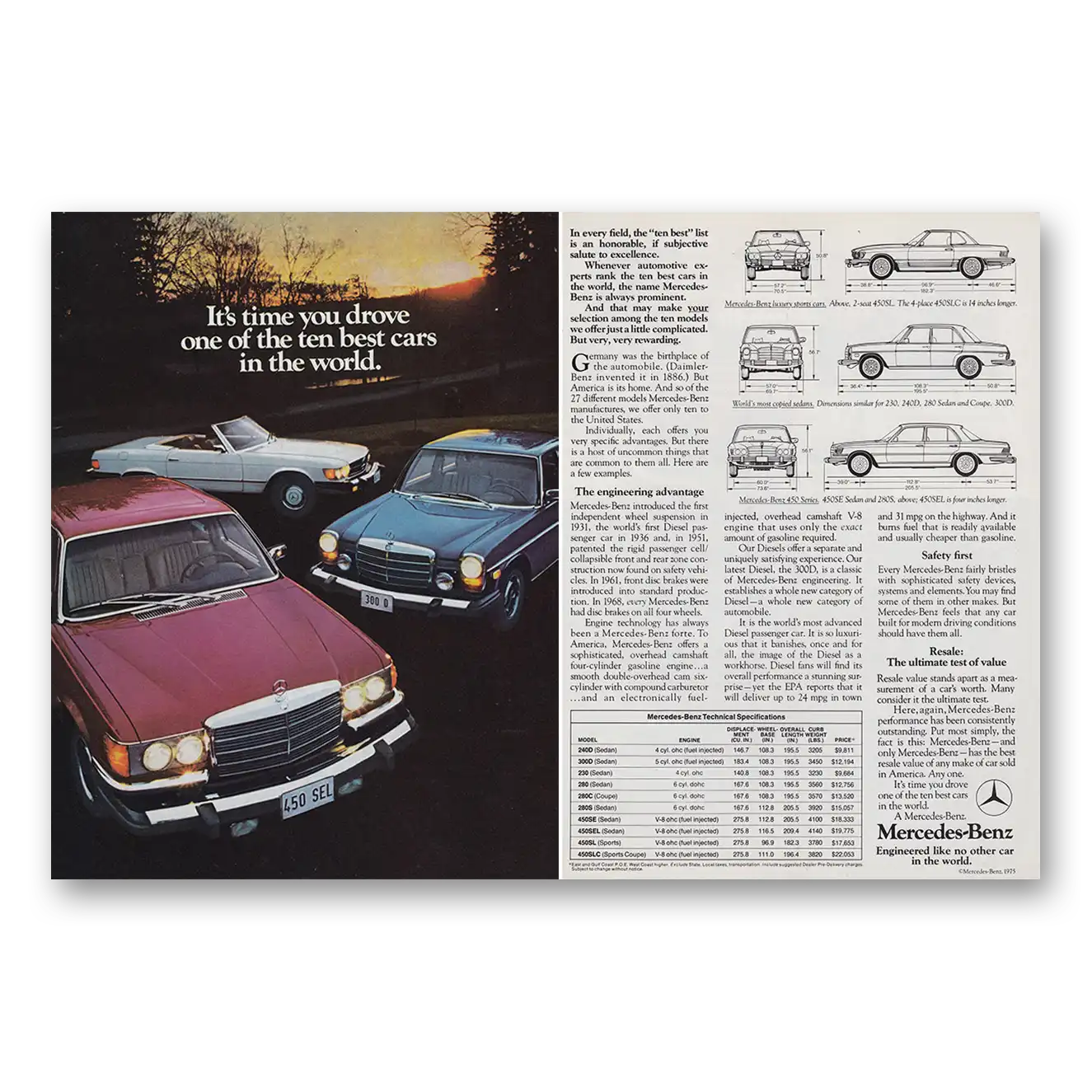 1975 Mercedes Benz Print Ad | Ten Best Cars