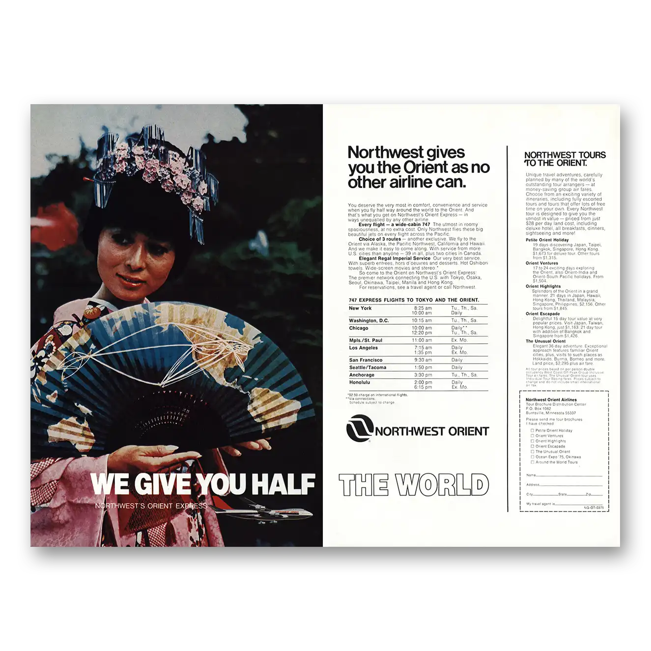 1975 Northwest Orient Airlines Print Ad | We Give You Half