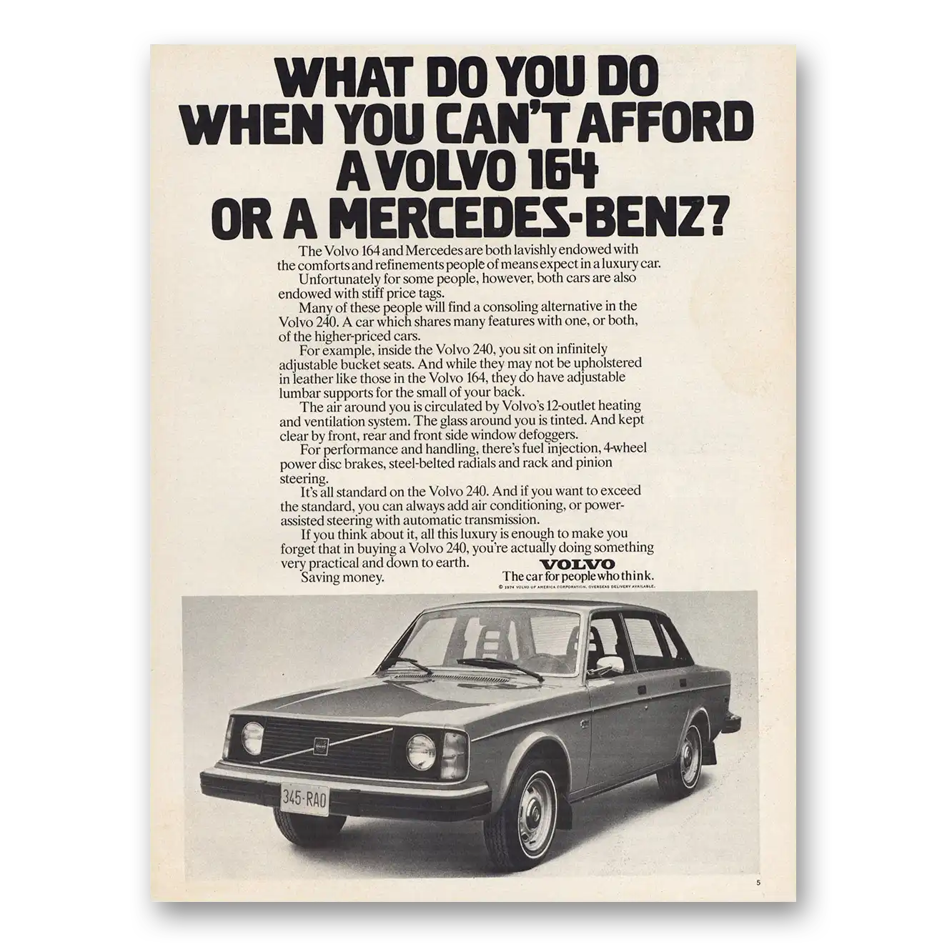 1975 Volvo 164 Print Ad | What Do You Do When You Cant Afford