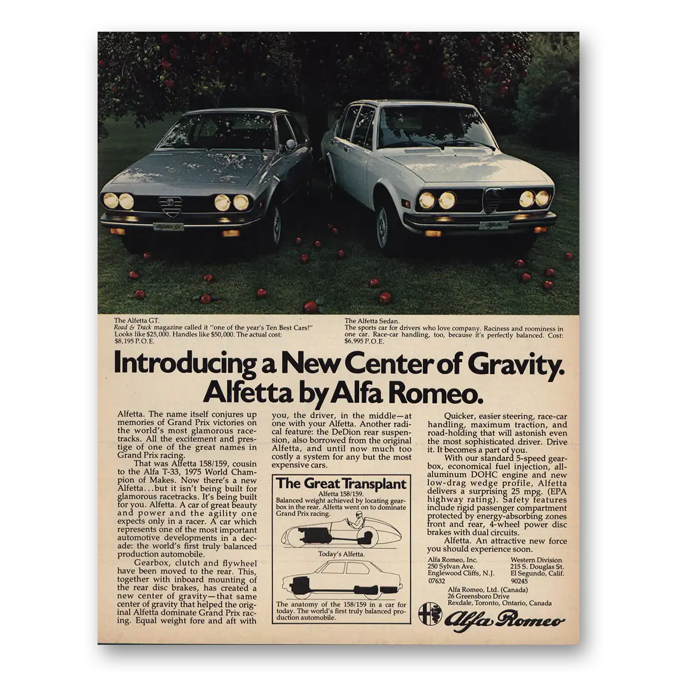 1976 Alfa Romeo Alfetta Print Ad | New Center Of Gravity