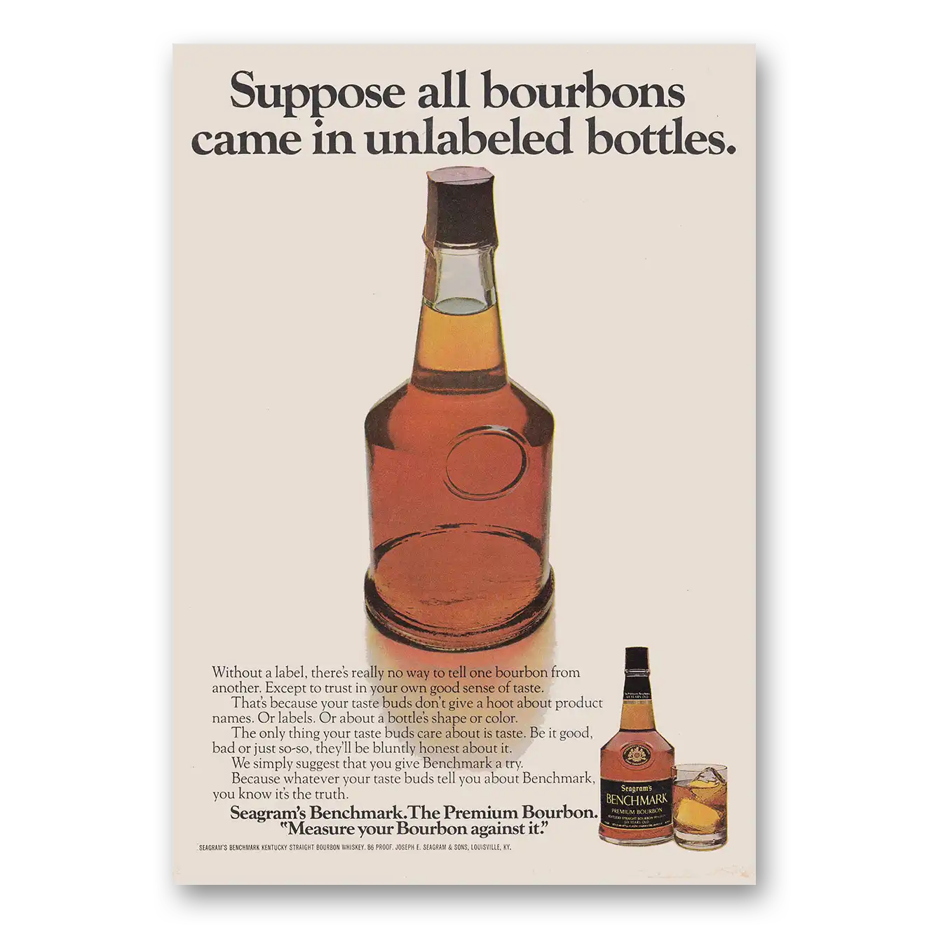 1976 Benchmark Bourbon Print Ad | Unlabeled Bottles
