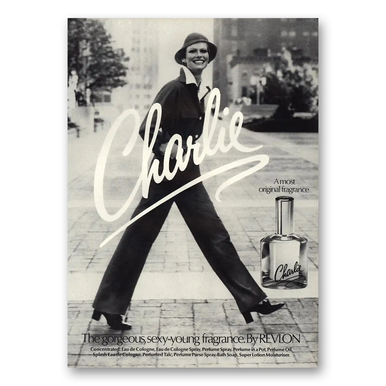 This is an original 1976 Charlie Perfume print ad published by Revlon.