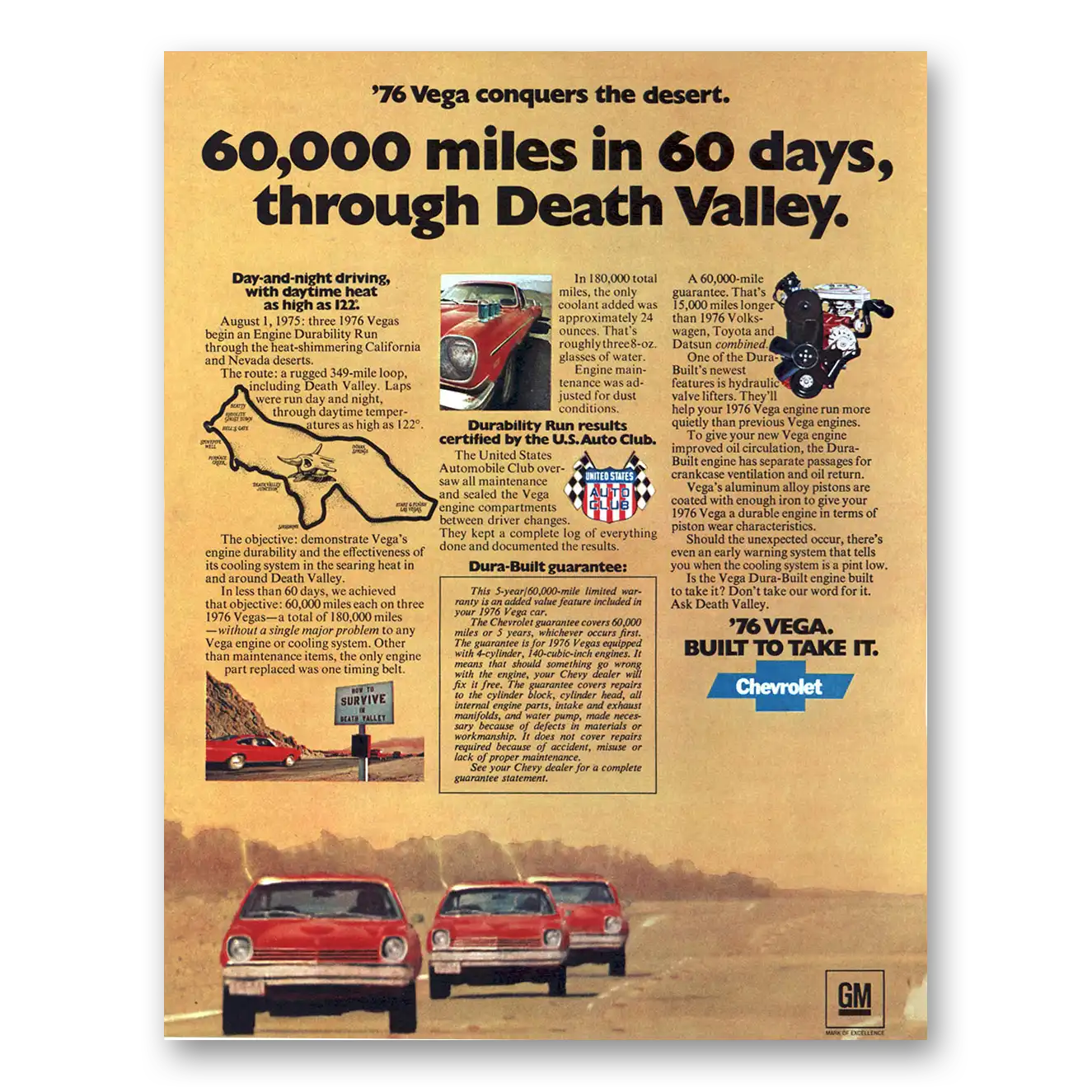 1976 Chevrolet Vega Print Ad | Death Valley