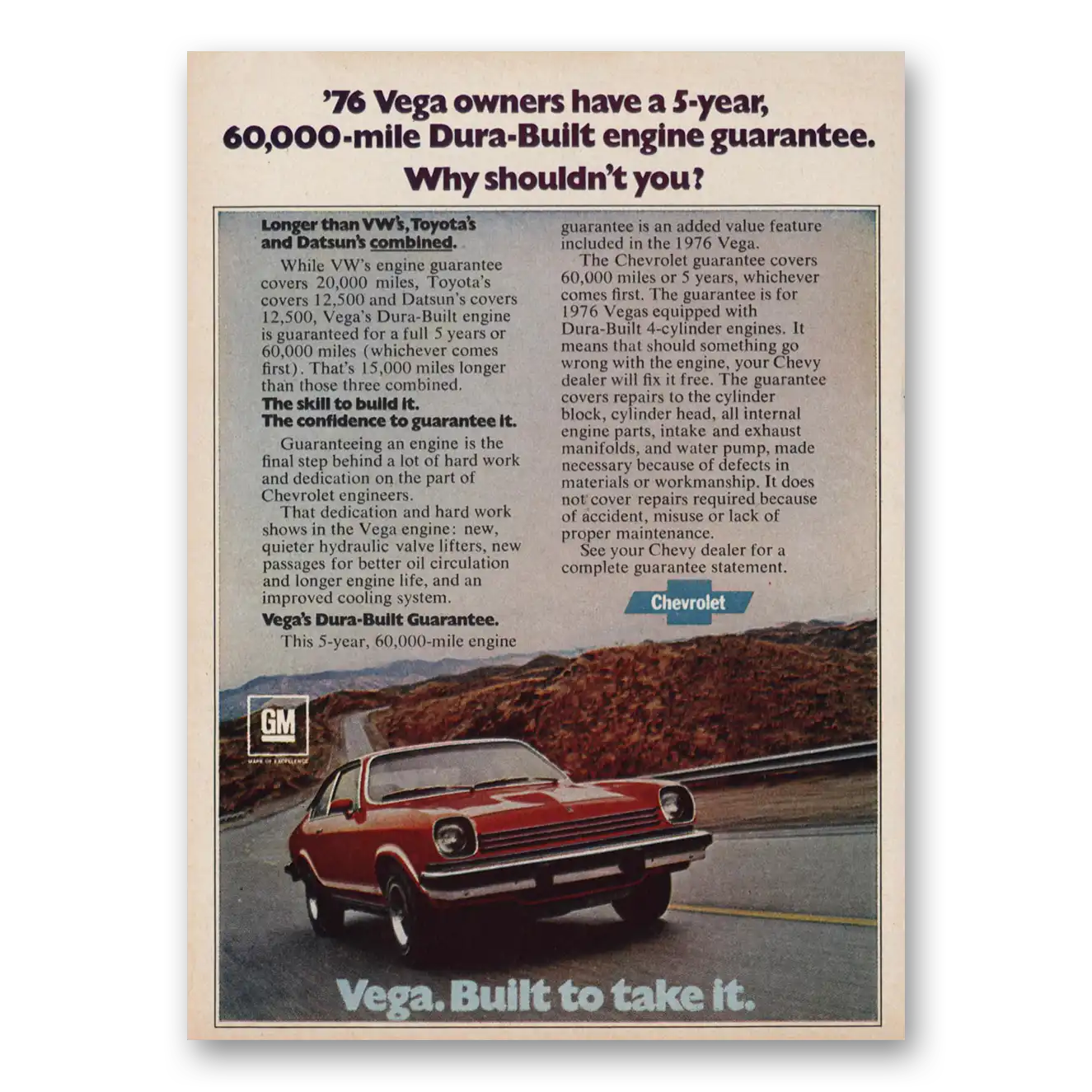 1976 Chevrolet Vega Print Ad | Dura Built