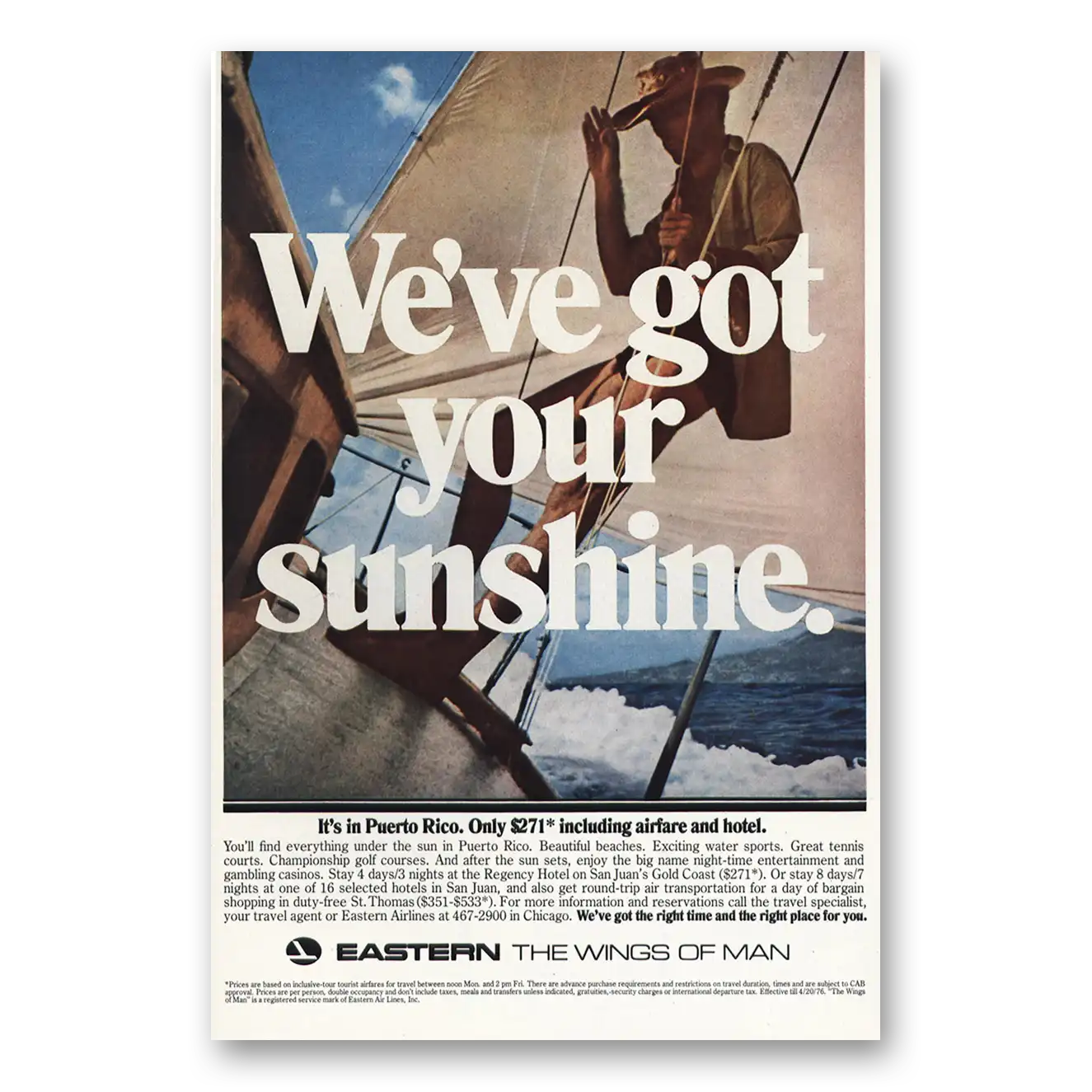 This is an original 1976 Eastern Airlines print ad published by Eastern Airlines.