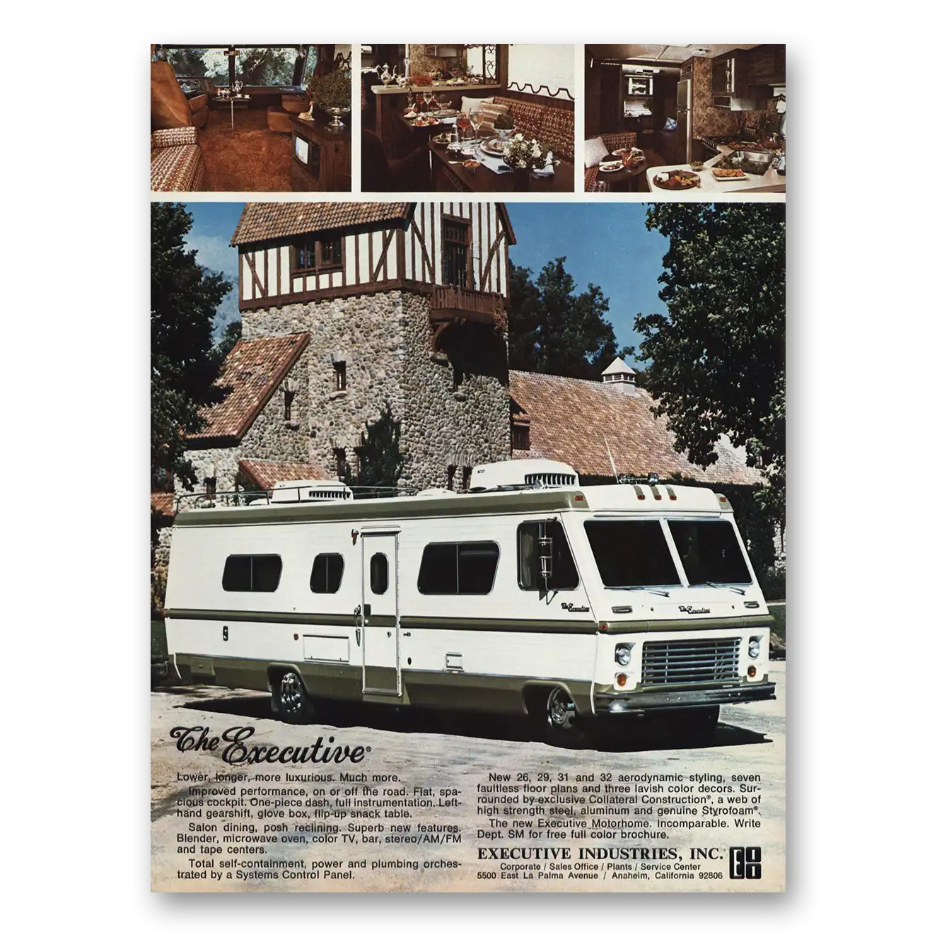 This is an original 1976 Executive Industries RV print ad published by Executive Industries.