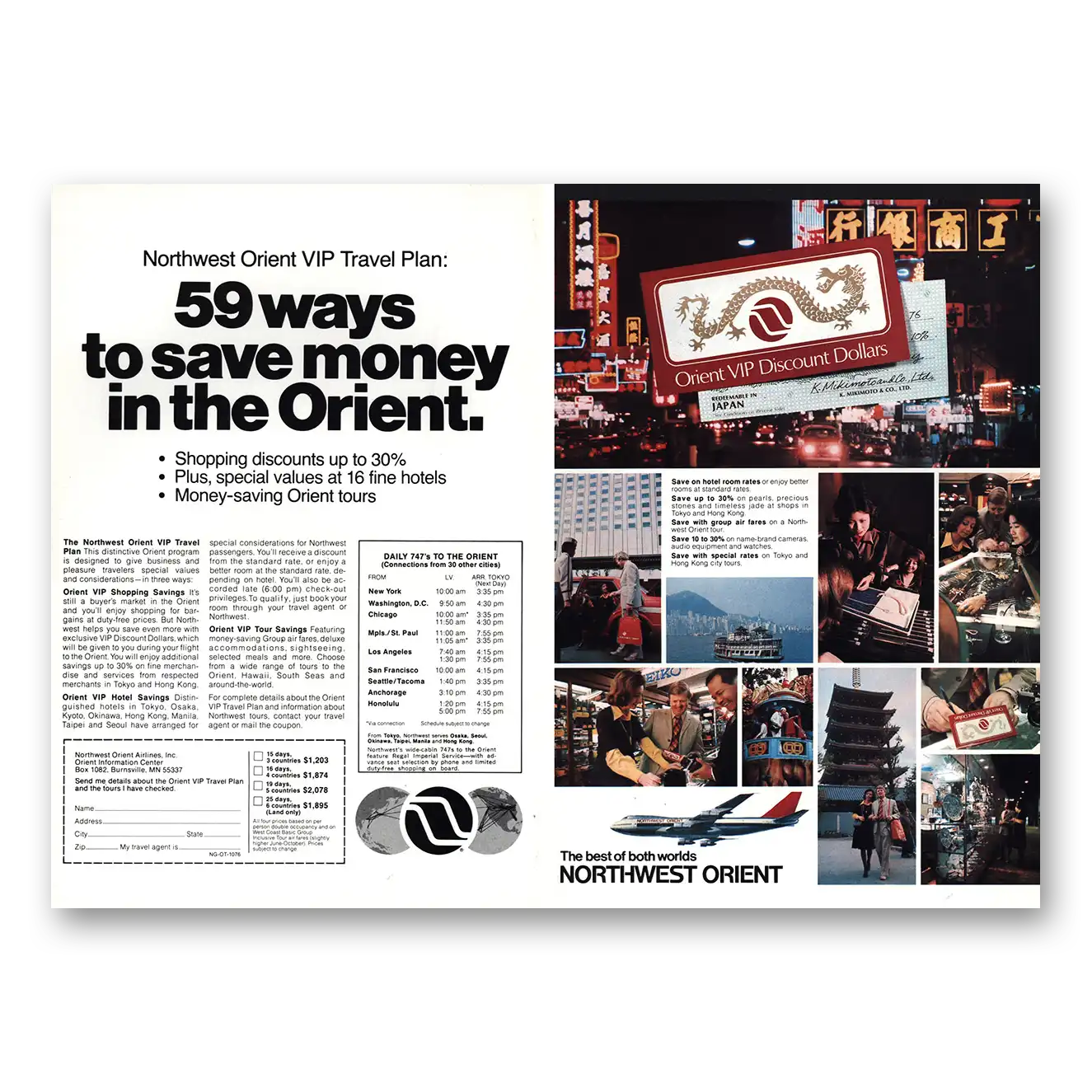 1976 Northwest Orient Airlines Print Ad | Save Money