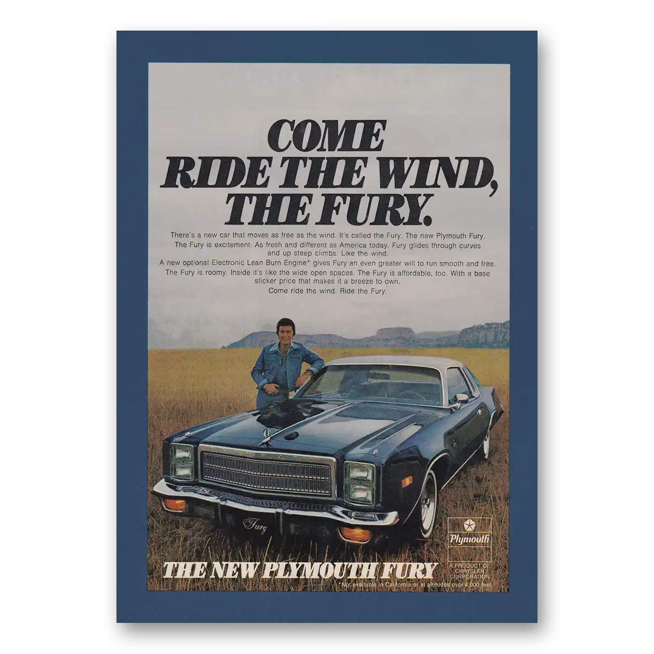 1976 Plymouth Fury Print Ad | Come Ride Wind